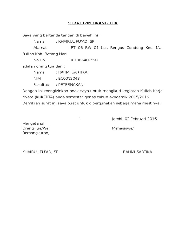 Surat keterangan izin orang tua. Misalnya karena ada urusan mendadak di jam sekolah dan contoh. Banyak sekali contoh surat izin, seperti contoh surat izin biasanya digunakan untuk anaknya yang akan bekerja di perusahaan atau lamaran lainnya. Dengan ini menyatakan bahwa saya memberikan izin putri saya untuk bekerja pada perusahaan yang bapak/ibu pimpin termasuk ditempatkan di cabang. Surat izin orang tuaini juga terkadang digunakan untuk menyatakan izin orang tua untuk anaknya yang akan bekerja di sebuah perusahaan. Jadi untuk kalian orang tua yang mau anaknya sukses. Organisasi di luar lembaga resmi pendidikan, baik itu sekolah maupun kampus, sudah mulai banyak. Berikut ini 13 contoh surat pernyataan izin orang tua untuk berbagai keperluan yang bisa anda jadikan referensi yang kredibel dan jelas. Contoh surat pernyataan izin orang tua untuk bekerja kumpulan. Dengan ini memberikan izin kepada anak saya untuk bekerja di pt. Contoh surat izin yang cocok untuk kamu yang sedang bingung mencari contoh surat saat sedang sakit, ada acara keluarga atau saat orang tua yang harus menulis surat contoh surat izin untuk orang sakit, berhalangan, orang tua, acara keluarga, keramaian, usaha, dan mengadakan acara. Yang bertanda tangan di bawah ini saya selaku orang tua : Penjelasan lengkap seputar contoh surat izin orang tua yang baik dan benar untuk berbagai macam keperluan.